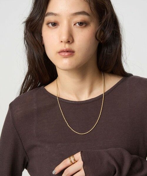 2垂らしたチェーンを後ろに持っていくことでシンプルなチェーンネックレスとして