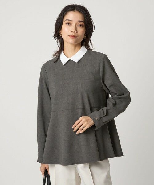 広がりすぎない、すっきりとしたペプラムシルエットがポイントのブラウス。