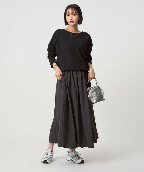 フラットシューズやスニーカーでカジュアルに、ヒールできれいめにと、小物次第で雰囲気が変わります。