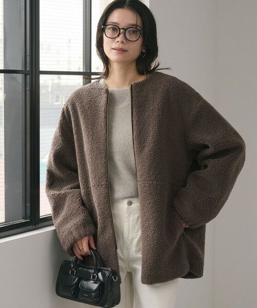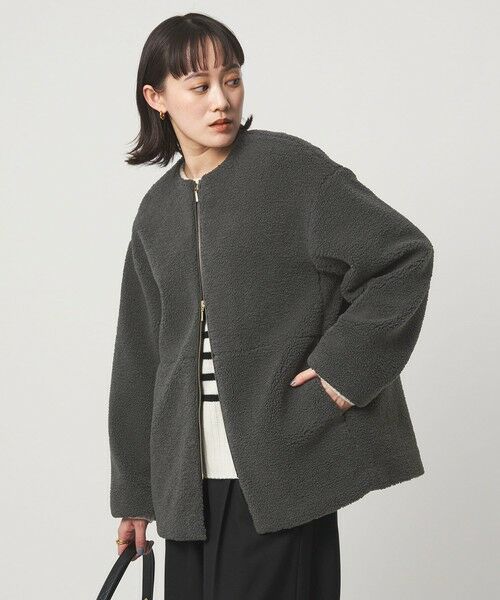 昨年もご好評いただいた、ノーカラーでフェミニンな印象のボアブルゾン。
