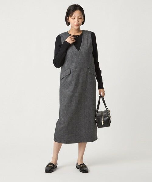 大人の上品さを感じさせるデザインで、オンオフ問わずに重宝するジャンスカです。