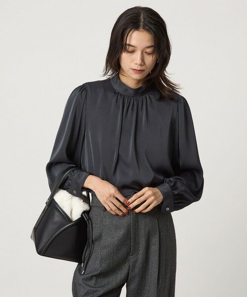 首回りや袖口にギャザーを施し、ふんわりとさせたシルエットがポイント。