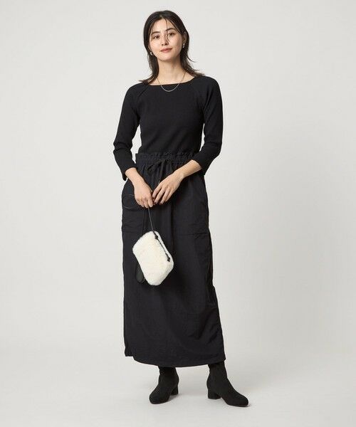 異素材ドッキング×ウエストのギャザーデザインが新鮮な印象の一着です。