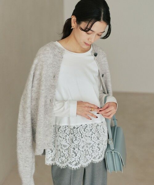 ニットやスウェットの裾から、レースをちらっと覗かせるレイヤードスタイルがおすすめ。