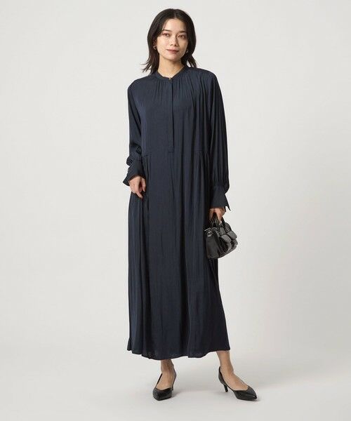 ノーカラーのデザインがすっきりと大人な雰囲気のワンピース。