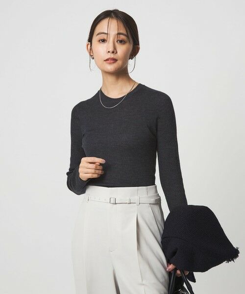 ウール シアー リブ クルーネック ニット ウォッシャブル