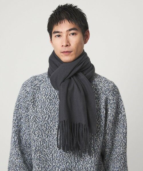 ニットやスウェットなどのトップスに、大判のボリュームマフラーを合わせたスタイリングなども今の気分。