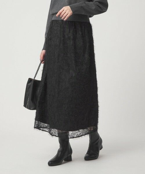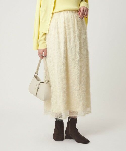 レースとふんわり毛足感のある糸をMIXさせた素材が大人フェミニンな雰囲気。