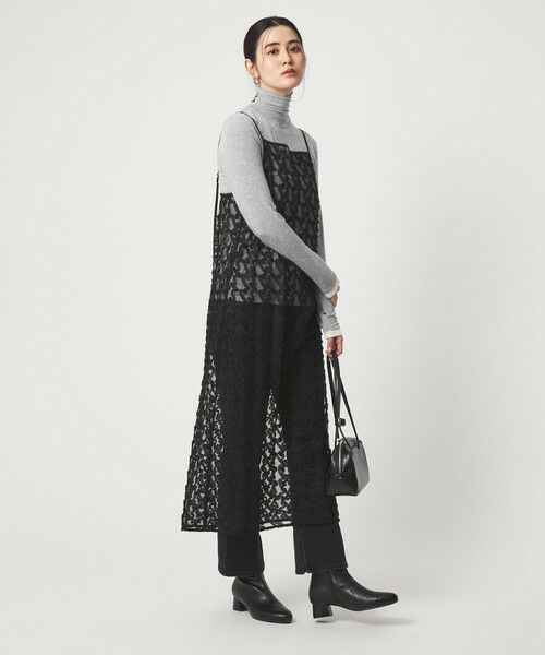 シアー感がスタイリングのアクセントになる、レイヤードキャミワンピース。