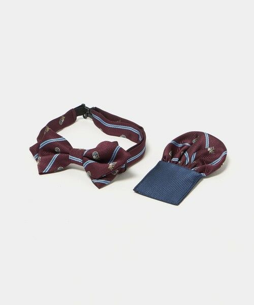 トラディショナルなストライプ&クレスト柄のボウタイ&チーフセット。