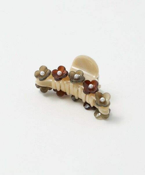 サイドに施されたフラワーモチーフが映えるヘアクリップ。