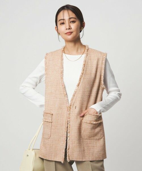 コーディネートにほどよいアクセントを加えてくれるツイードライクな素材のジレ。