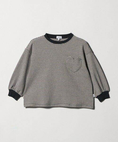 シックな細ボーダーとリンガーデザインを合わせることでモードなエッセンスをプラス。