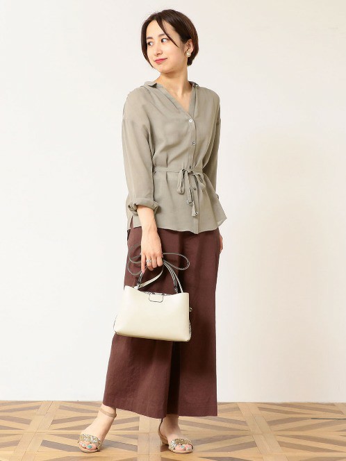 カーキシャツ×ブラウンパンツ model:165~169cm