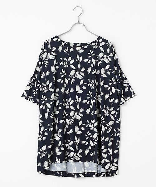 サラサラとした肌触りで伸縮性も良いエスパンディ。夏らしいリーフ柄のプリントを施しました。ゆったりとしたサイズ感で通気性も良く快適な着心地です。デニムやレギパンとコーディネイトし易いチュニック丈。プリントが入っているので1枚でさまになります。