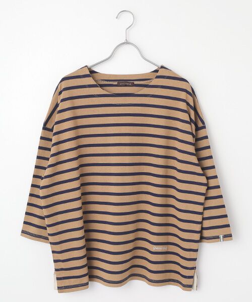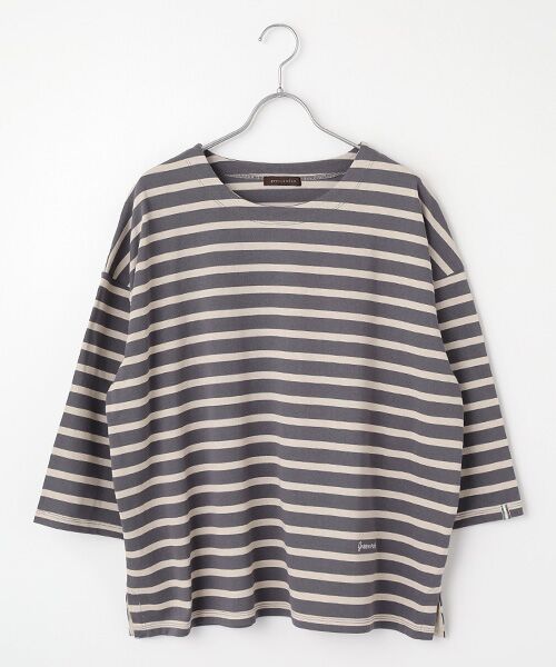 しっかりとした32/2天竺ボーダー。空気の力で繊維を撚り合わせて作られた”空紡糸”を使用している為軽い仕上がりです。糸の構造上ドライでざっくりとした風合いで、吸水速乾性もあります。秋に向けてダークな2色展開。ハリ感があるので体のラインを拾いにくく、ゆったりとしたサイズ感でぬけ感があります。左裾にgreen noutの刺繍入り。