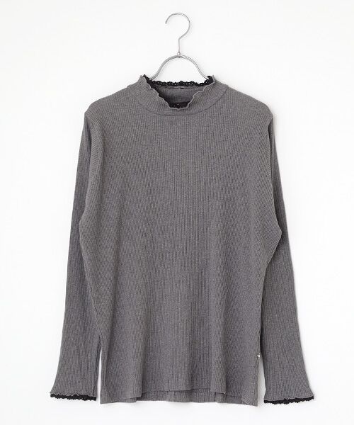 薄手のテレコ生地を使用したハイネック。柔らかく伸縮性が良いので着心地がよいです。衿口と袖口に繊細なレースを付けました。チラ見せしてコーディネイトのポイントになります。シャツやニットのインナーに便利です。