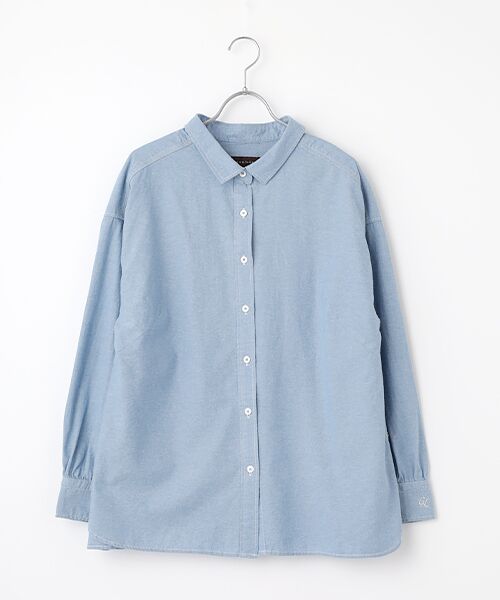 綿100%のナチュラル感の有るダンガリー生地を使用。ゆったりとしたサイズ感なので、軽い羽織としても使いやすいです。配色ステッチと配色の釦付け糸がポイントです。左袖口にはGN刺繍入り。