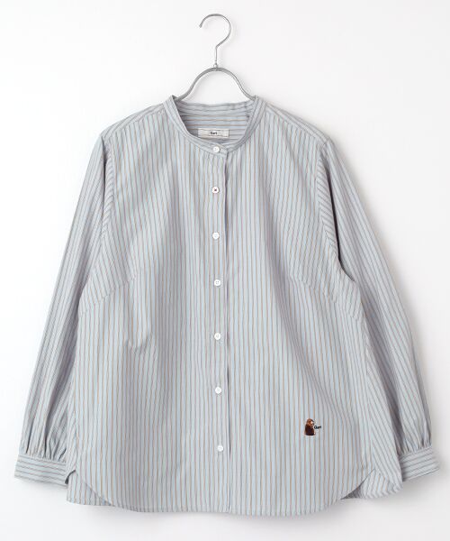 表面感もカラーも綺麗なストライプ生地を使用。少しAラインのシルエットはトラディショナルでありながらも女性らしい可愛らしさもあります。袖口内側にはトリコロールテープを付けポイントしています。左裾にはトレードマークのGuriの刺繍入り。