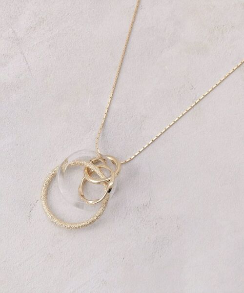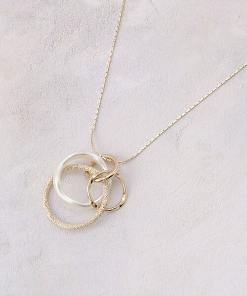 メタルとクリア・パール風リングを組み合わせたワントップネックレス。