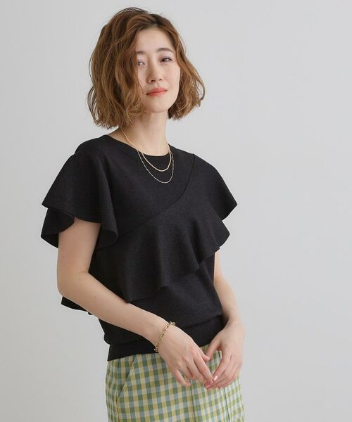 繊細なラメと大胆にあしらったアシンメトリーのラッフルフリルが目を惹く、トレンド感満載のニットプルオーバーです。
