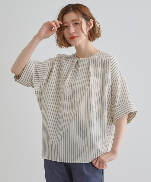 ゆったり着られるニュアンスシルエットのドルマンスリーブシャツです。