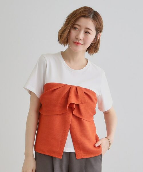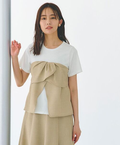 リネンライクな素材のビスチェとTシャツをドッキングした1枚でサマになるデザインTシャツです。