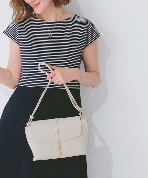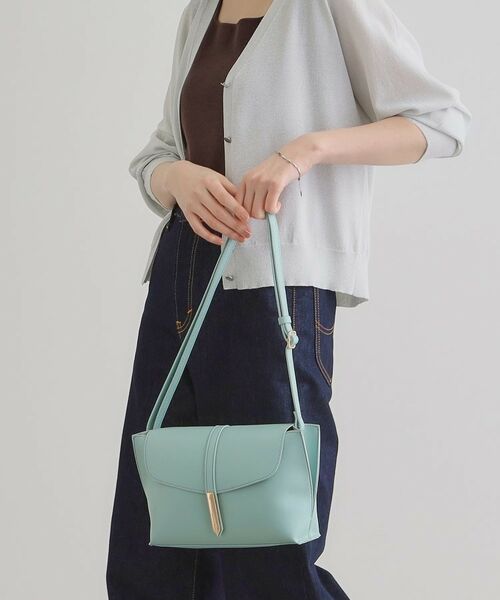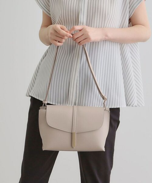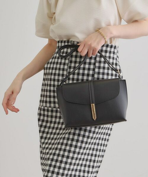 ベルト先のメタルパーツに存在感がある上品なフラップ付きショルダーバッグ。