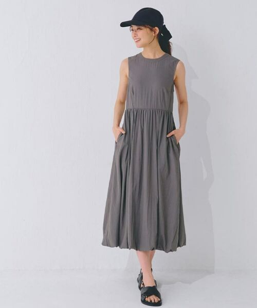トレンド感のあるバルーンシルエットが魅力のノースリーブワンピース。