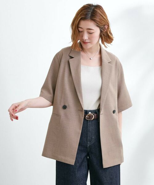 トレンド感のあるダブルブレスト仕様に、短めの袖丈が今の気分にマッチ。