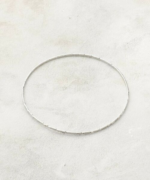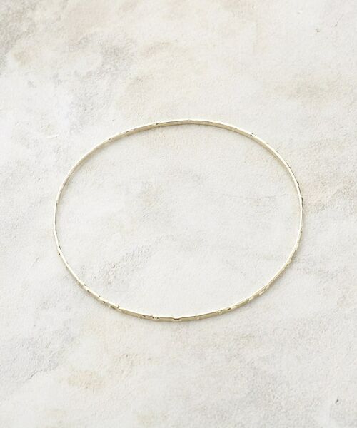 華奢なメタルラインにニュアンスのあるデザインをカービングしたバングル。