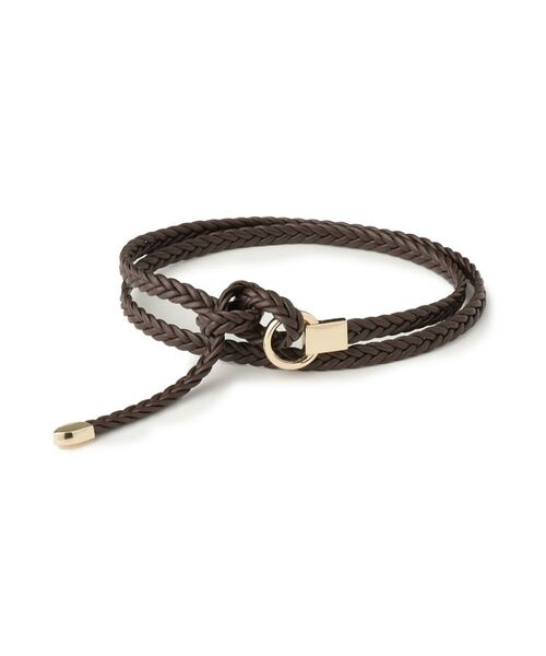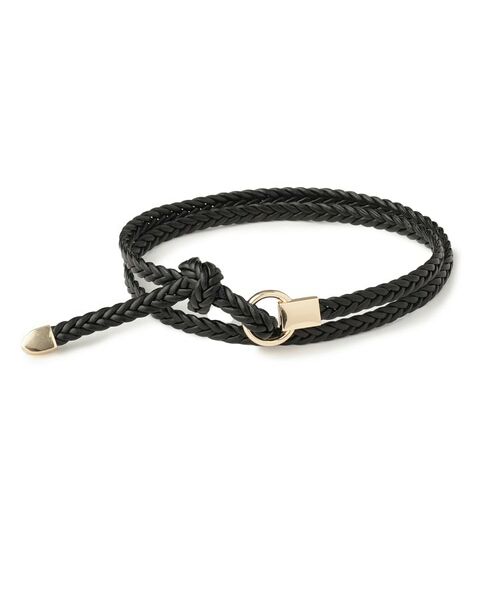 メッシュで編み込んだ細めのベルトをサークルのバックルに結んで使用するデザイン。