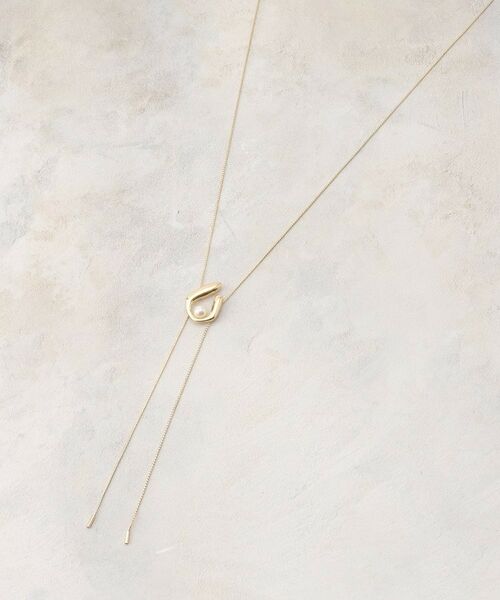 U字のメタルパーツにフェイクパールを配したスライドネックレス。