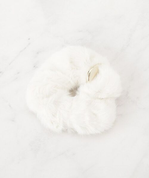 ボリュームのあるフェイクファーシュシュにメタルパーツを合わせたアイテム。