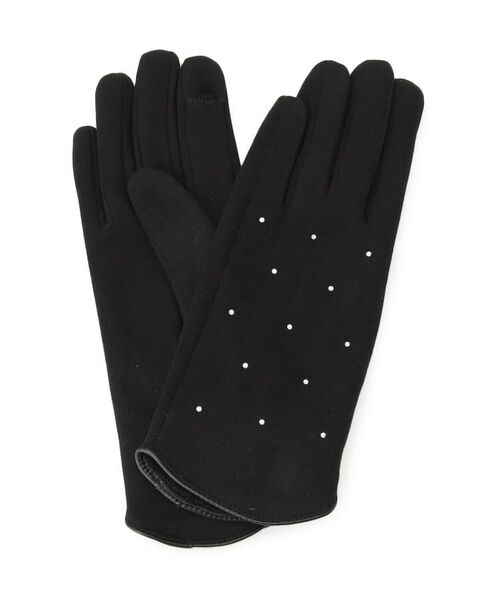 手首の合成皮革パイピングとラインストーンが上品な手袋。