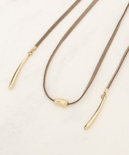 スエード調のリボンにメタルパーツでサイズ調整を付けたチョーカータイプのネックレス。