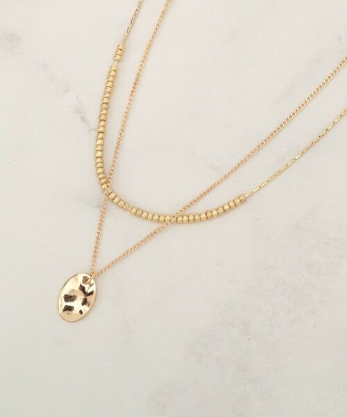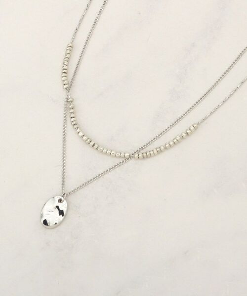 ニュアンスのあるメタルプレートとメタルビーズの2連ネックレス。