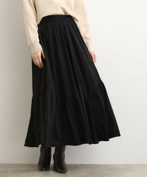 切替を入れることで、エスカルゴラインのように変化をつけたティアードスカート。
