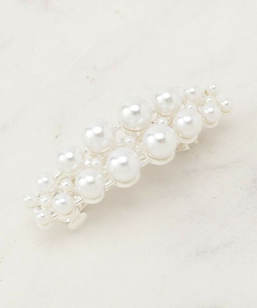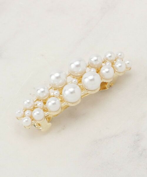 【デザイン】サイズの違うフェイクパールが並んだ、シンプルながら華やかな印象のバレッタです。セレモニーやパーティースタイルのヘアアレンジにおすすめです。※照明の関係により、実際よりも色味が違って見える場合があります。また、パソコン・スマートフォンなどの環境により、若干製品と画像のカラーが異なる場合もございます。本商品は、ご注文確定後に取り寄せにてお客様への出荷手配をさせていただきますので、お届けまでに7~10日前後かかる場合がございます。また、商品は他社サイトと在庫を共有しているため、ご注文いただいた商品が欠品となり、キャンセルとなる場合がございます。