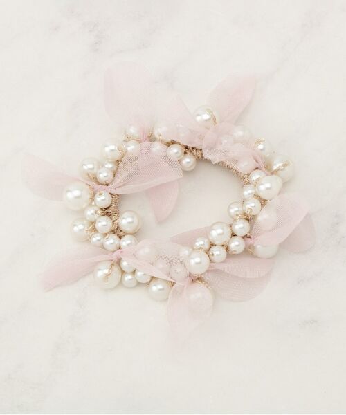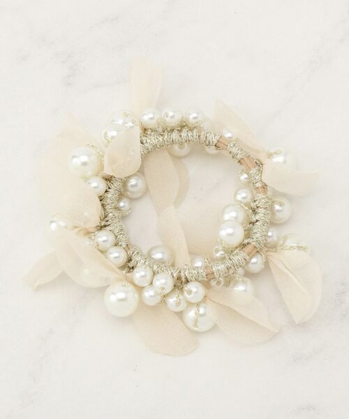 【デザイン】フェイクパールとシフォンリボンの素材感がアクセントになるフェミニンなゴム仕様のヘアアクセです。手首に付けても華やかな印象になります。デイリー使いはもちろん、お出かけやセレモニースタイルのワンポイントに簡単にアレンジが叶います。※照明の関係により、実際よりも色味が違って見える場合があります。また、パソコン・スマートフォンなどの環境により、若干製品と画像のカラーが異なる場合もございます。本商品は、ご注文確定後に取り寄せにてお客様への出荷手配をさせていただきますので、お届けまでに7~10日前後かかる場合がございます。また、商品は他社サイトと在庫を共有しているため、ご注文いただいた商品が欠品となり、キャンセルとなる場合がございます。