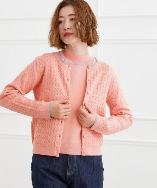 遊び心ある配色で華やぐ、もちもちタッチのニットカーディガン。