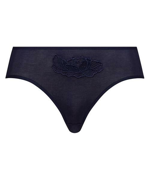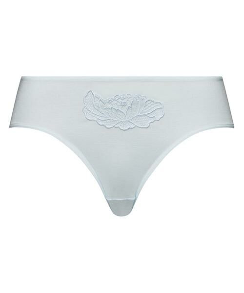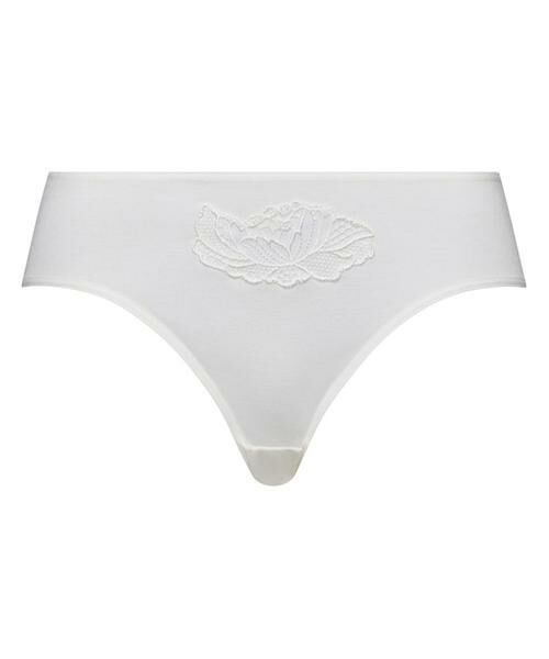 はきやすいシンプルなデザインのショーツフロントにあしらわれた華やかなオーストリア産のレースは、HANROのデザインチームが新しい技術で特別に制作したもの
