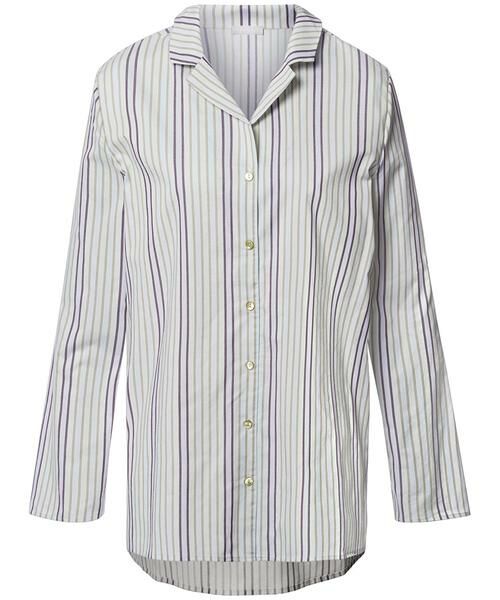 さまざまなアイテムとのコーディネイトが楽しめるトップスコットン100%の織り生地を使用した、ストライプ柄のオーバーサイズシャツデニムとコーディネイトするなど、アウターとしてもおすすめ裾の両側にスリットを入れた、シンプルながらHANROのこだわりが詰まったアイテム