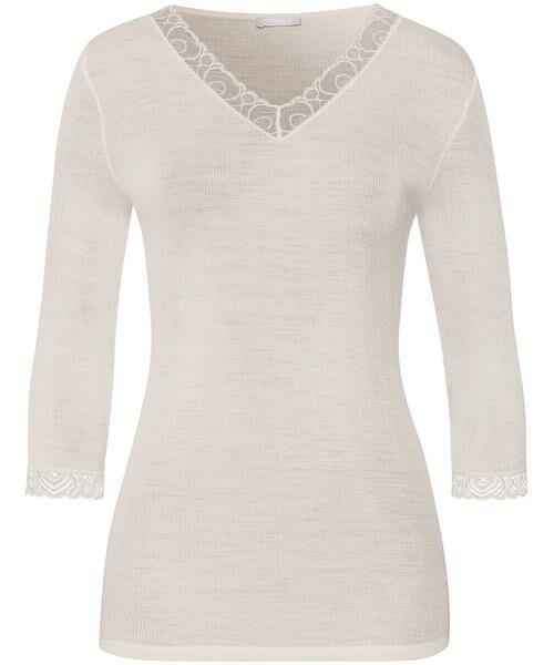 胸もとと袖口にあしらわれたジャカードレースが繊細で美しい7分袖のトップス軽やかな着ごこちの、秋冬のワードローブに加えておきたい一枚ウールは、南アフリカの農場で羊にやさしい飼育方法で生産された“ノンミュールジングウール”を使用身生地には保温性のある素材を使用しており、肌寒い日におすすめのアイテム立体感のある繊細なジャカードレースがほどこされた、あたたかみのある上質なリブ素材を使用。メリノウールとシルクの混紡素材はやわらかく軽い着用感で、寒い日の重ね着におすすめです。※掲載サイズは輸入元サイズです。