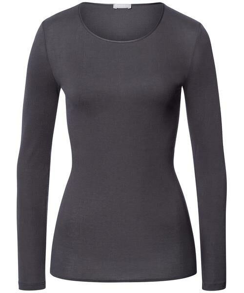 シルケット加工をほどこした、光沢感のある綿100%(身生地)の長袖トップス。