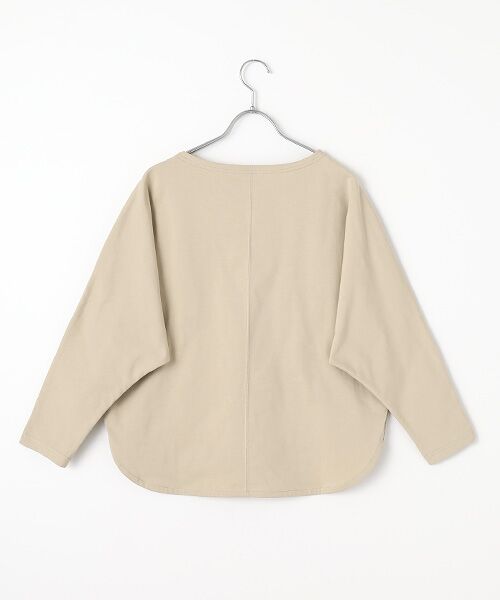 シンプルな無地のバスクシャツはドルマンスリーブにすることで肩周りのシルエットがとても優しげで女性らしい見え掛です。裾にはシックな配色の"H"刺繍を施しカジュアル感をトッピング、シャツテールと併せて優しい雰囲気を醸し出します。