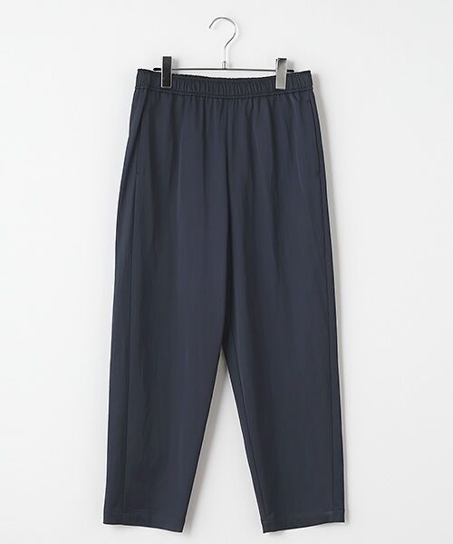 綺麗過ぎないサテン地のラフな風合いがカジュアルなコーディネートを新鮮にします。ウエストぐるりゴムギャザー、程よいゆとりのテーパードラインで楽な着用感。Tシャツなどカジュアルなアイテムとのコーディネートもおすすめ。