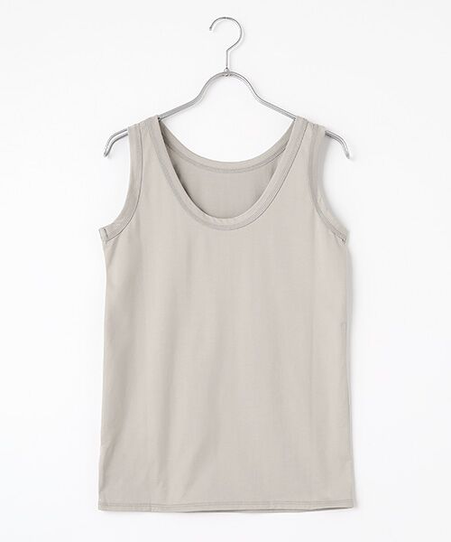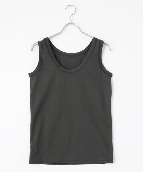 前後着用可能なタンクトップ。深めの後ろ衿ぐりはインナーとして着たときに涼し気に映ります。前衿ぐりは開き過ぎず、胸元をスッキリと見える様になど大人の女性にも着て頂ける様に意識しています。