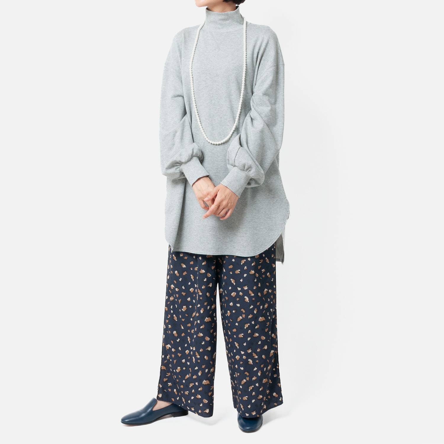 ロングTシャツとトレーナーをミックス、すっぽりと体を包み込むシルエットです。両サイドにポケット付き、一枚で完結するアイテムになります。コンパクト綿糸(毛羽が少なく、強い糸)のフラットな表面、ナチュラルな光沢感を持ち合わせています。細番手で編立た裏毛は適度な肉感と柔らかくふくらみのある風合いに仕上がり、着心地がよい素材です。