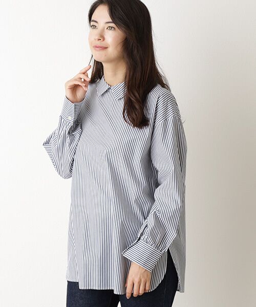 両面で着ていただけるデザイン、カフスは袖下の延長に開きと付けどちらでも様になる仕上がりとダブルカフスの様にターンナップ、表情の変化を楽しめる一枚です。緯糸80/2+40/1、縦糸50/1の高密度に織り上げたしなやかな肌触りのブロード素材です。先染めでしか表現できない奥行のあるシャンブレー感が特徴のロンドンストライプになります。